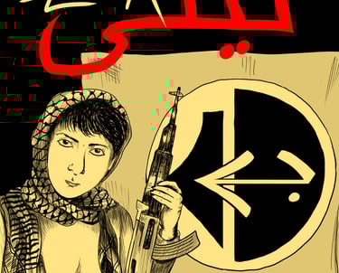 Ilustração originalmente produzida para a reportagem em quadrinhos "Ghassan Kanafani: a caneta explosiva da Palestina" (2022). Integra o Palestine Poster Project.