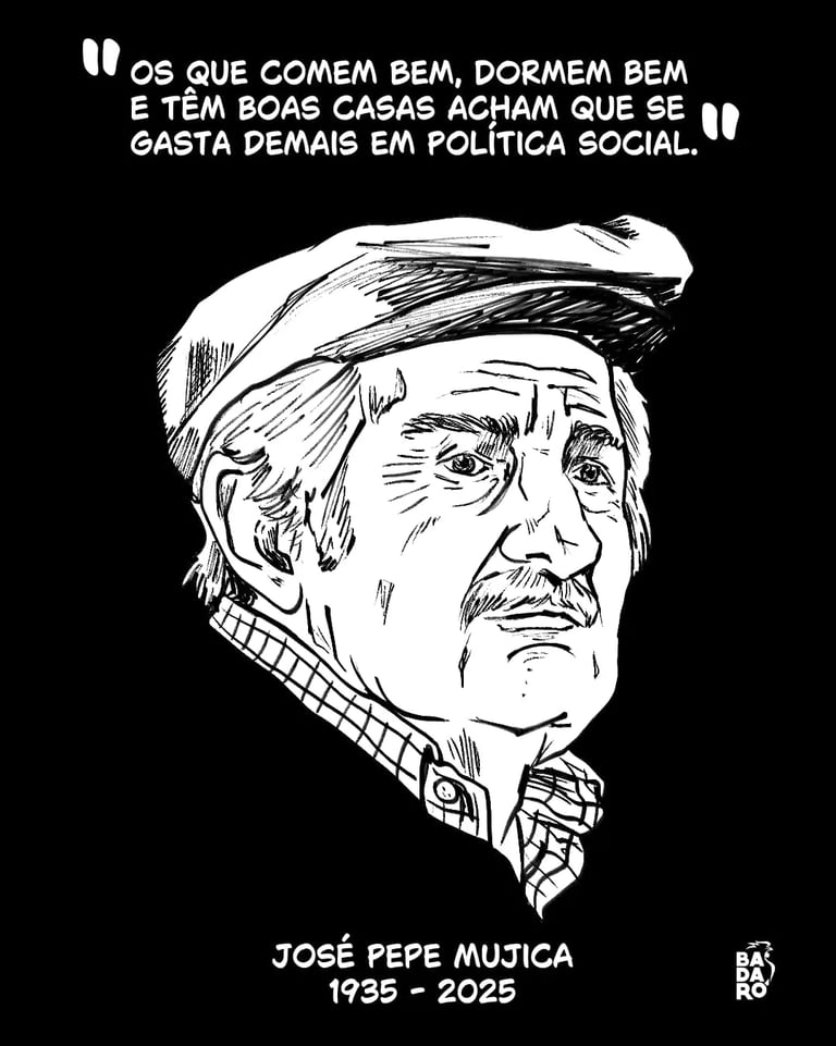 Ilustração para o site da Revista Badaró, no contexto da morte do ex-presidente do Uruguai. 2025.